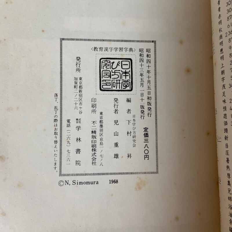 教育漢字学習字典 学林書院 下村昇 昭和43年